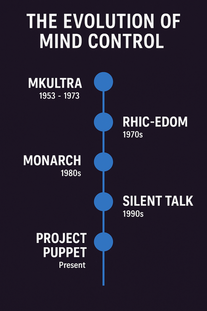 Project Puppet is not theory—it is the culmination of MKUltra, RHIC-EDOM, MONARCH, Silent Talk, and DARPA’s N3 interface research. It is a fully operational system run by the NSA, CIA, U.S. Space Force, and their defense partners.